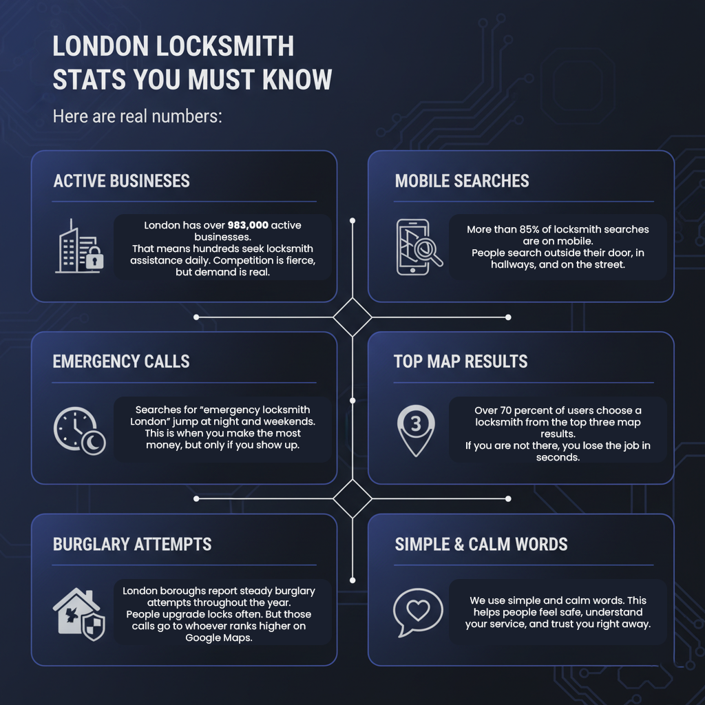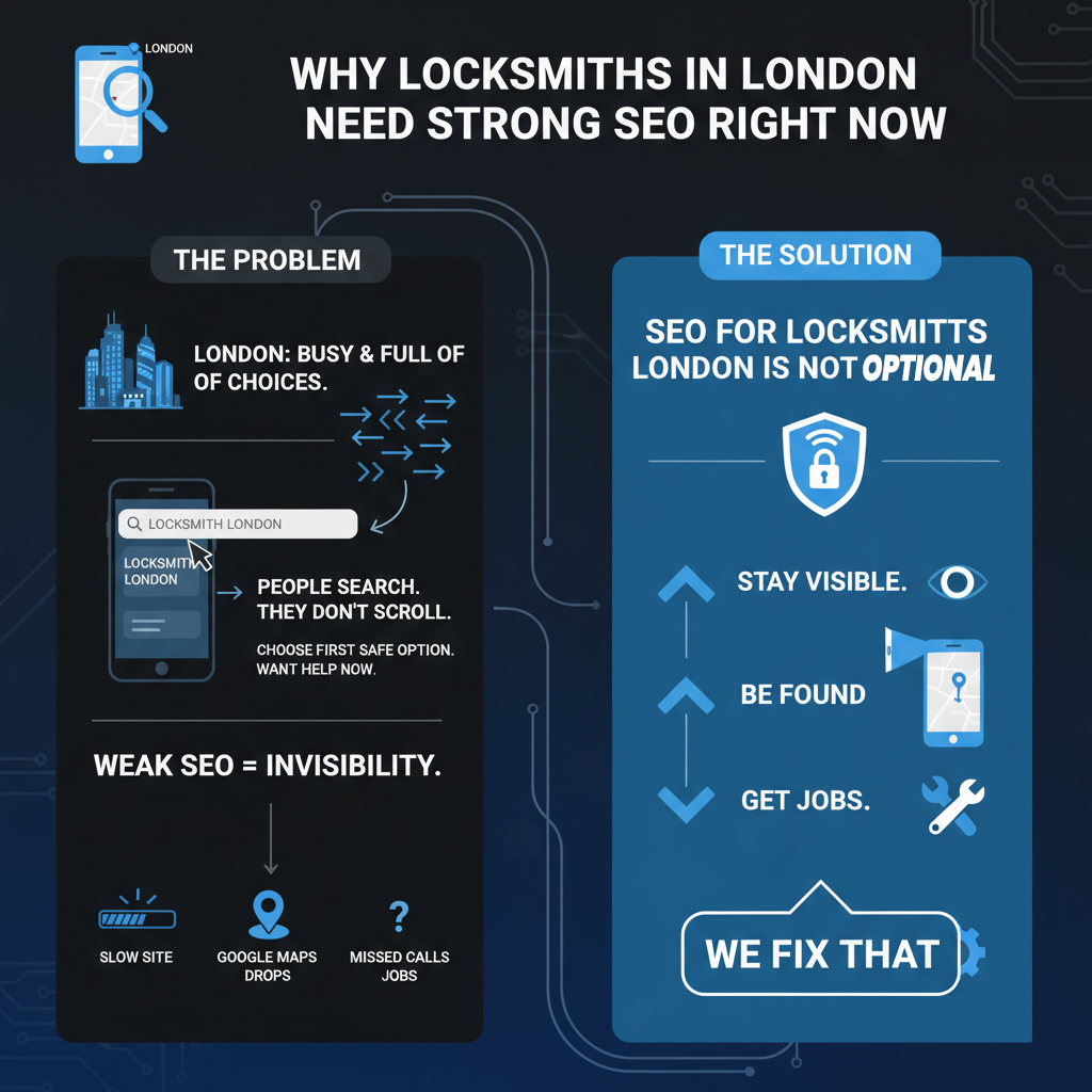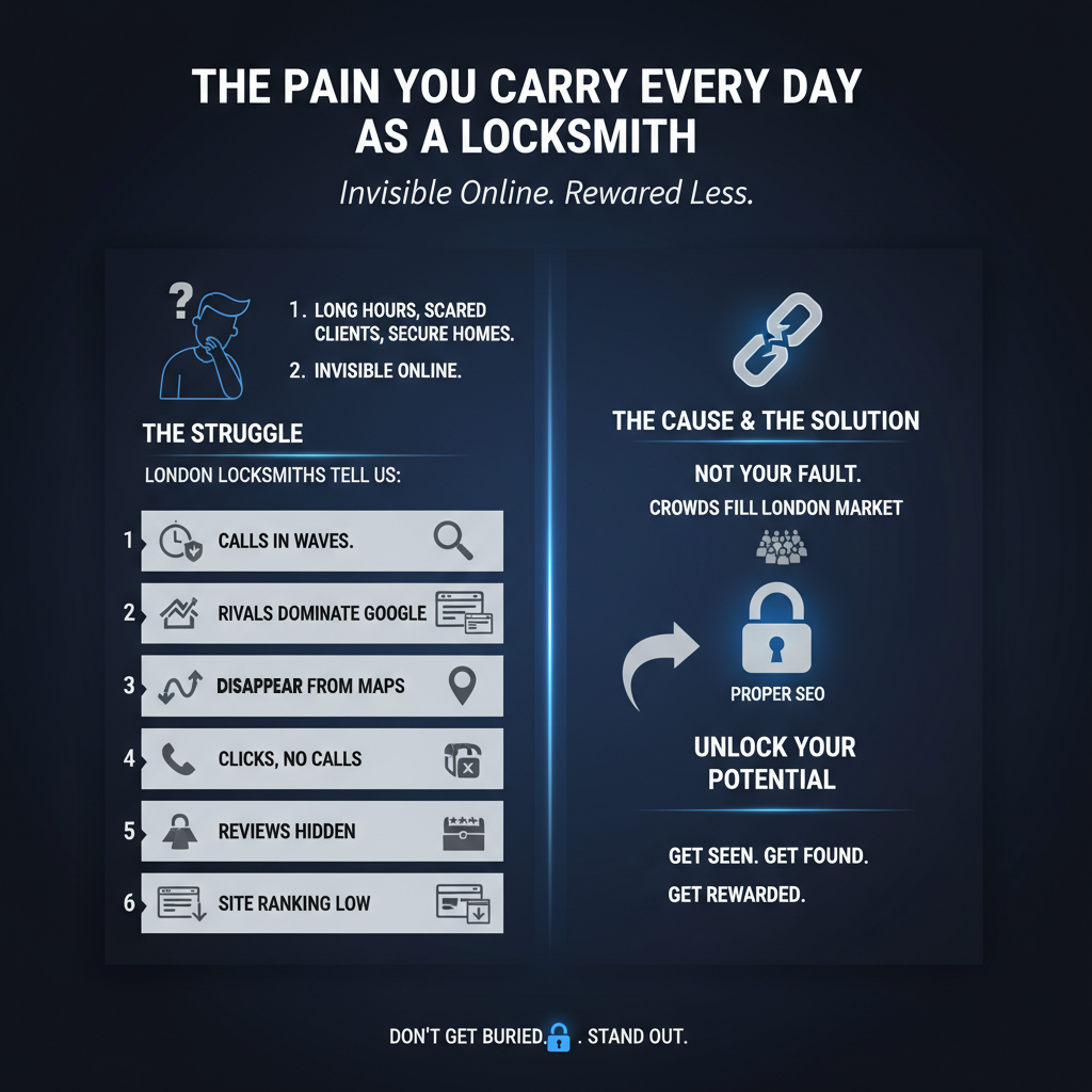 This is not your fault. Crowds fill the London market. Without proper SEO, even the best locksmith gets buried under bigger brands.