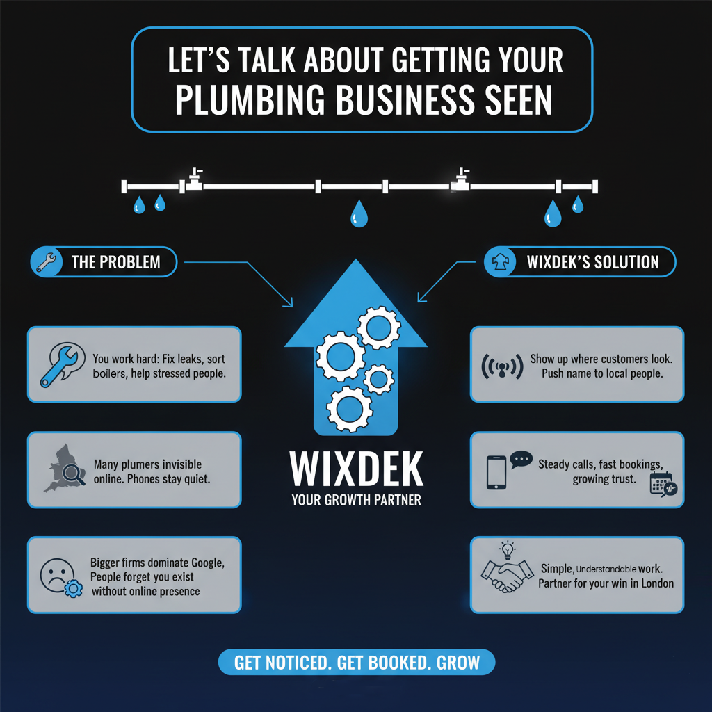 Wixdek helps plumbers show up where customers look. We push your name in front of local people, so you get steady calls, fast bookings, and trust that grows. We keep the work simple to understand, and we act like a partner that wants you to win in a busy city.