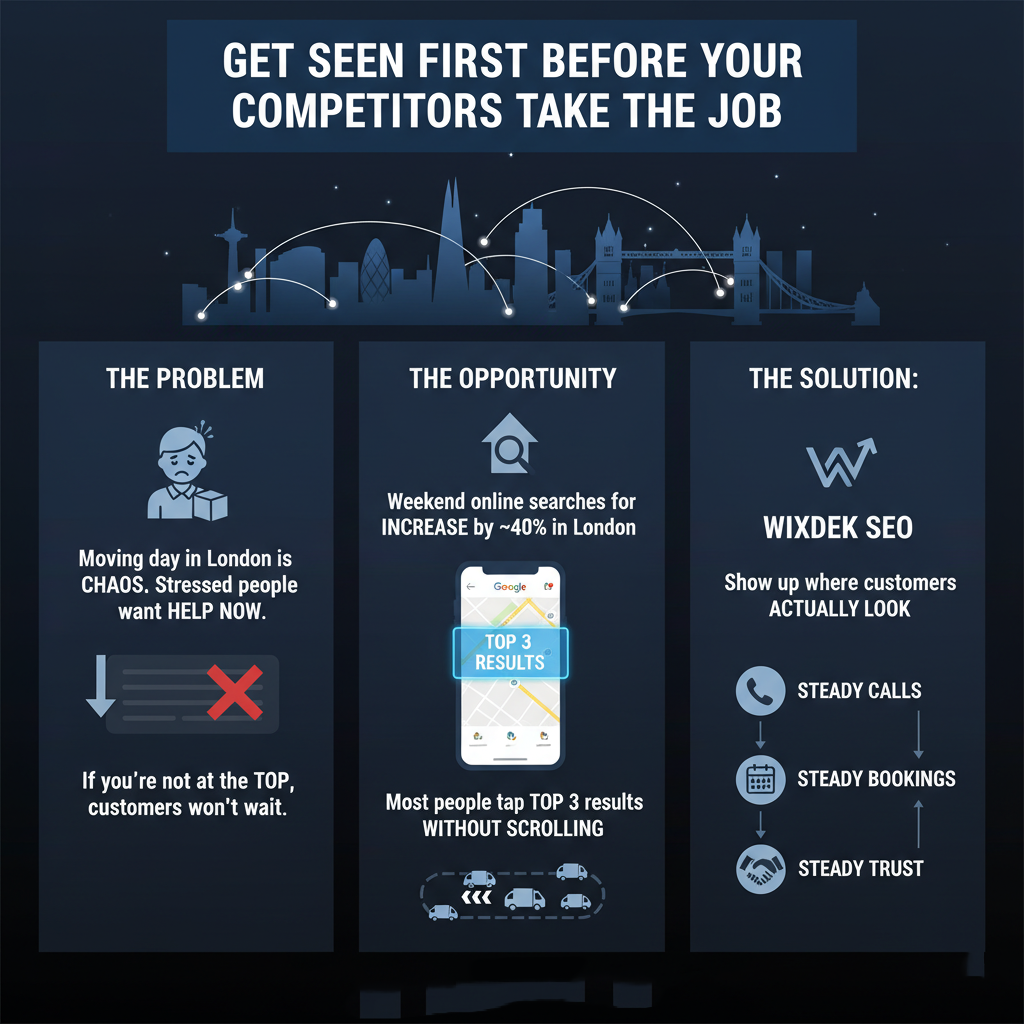 At Wixdek, we help removal companies show up where your customers actually look. And we do it in a simple, honest way that gets you steady calls, steady bookings, and steady trust.