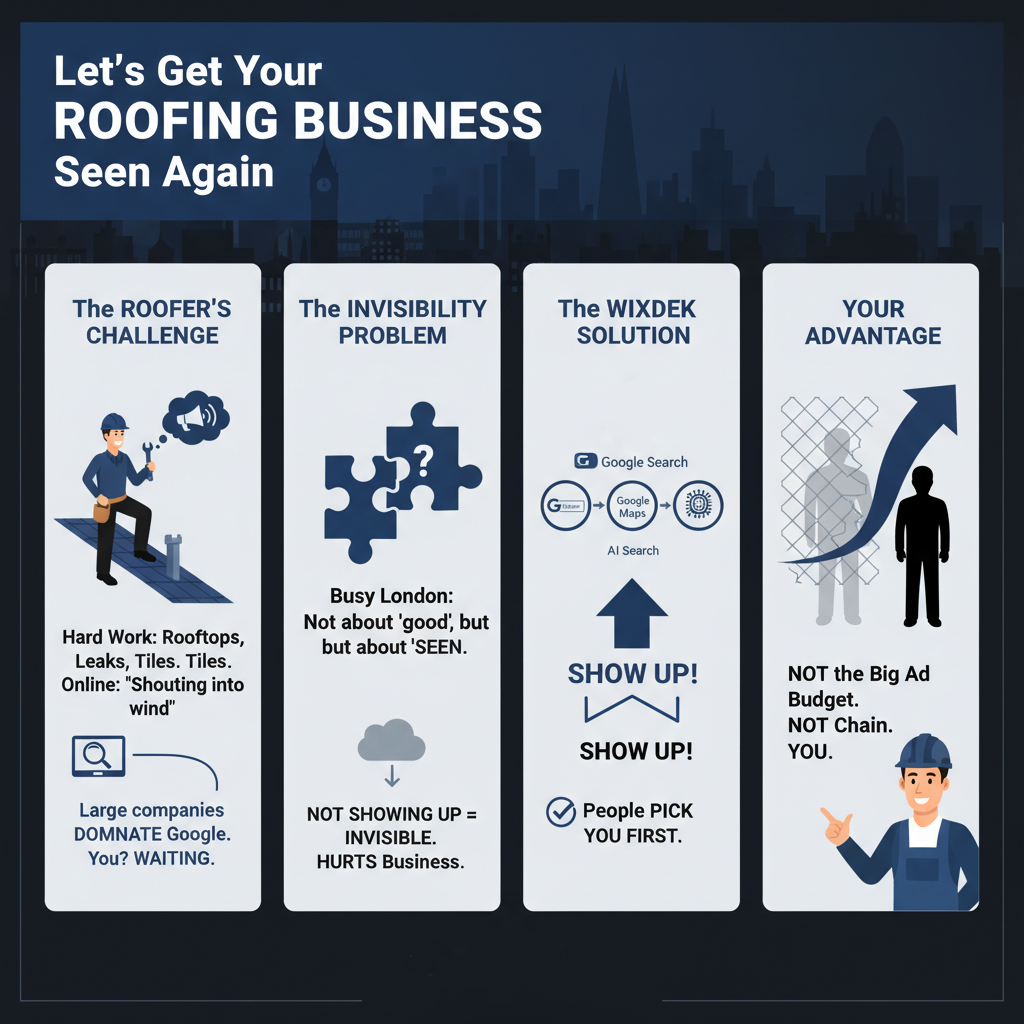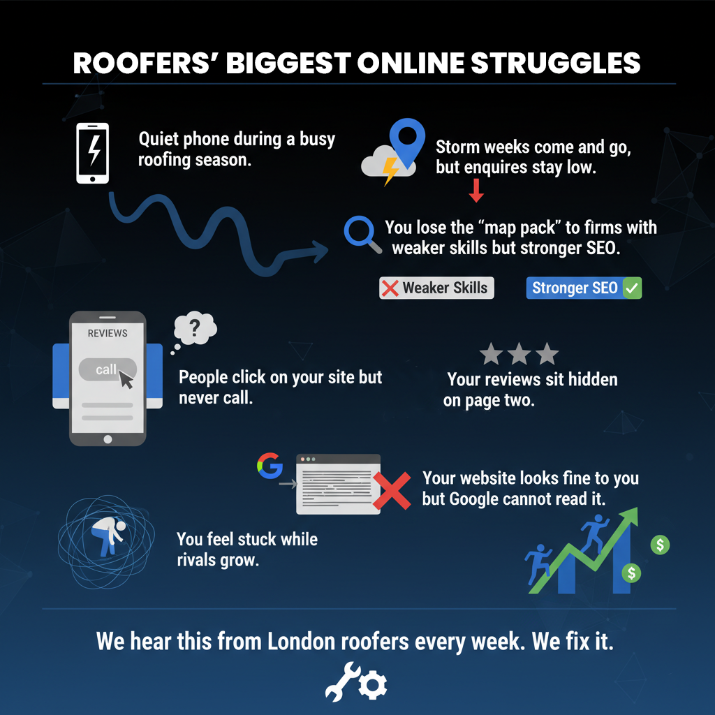 Roofers in London work hard. Daily tasks include climbing rooftops, fixing leaks, replacing tiles, and calming frightened residents. But online it feels like shouting into the wind. Large roofing companies dominate Google and grab all the calls. Meanwhile, you’re left waiting for the next enquiry that should be yours. In a busy city like London, you do not get chosen because you are good. You get chosen because someone sees you. When you are not showing up, you are invisible, and that hurts your business more than any storm ever will.