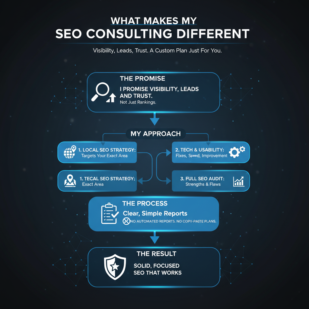Most “SEO experts” promise rankings. I promise visibility, leads, and trust. I look at your website, your area, your competition, and build a plan made just for you.